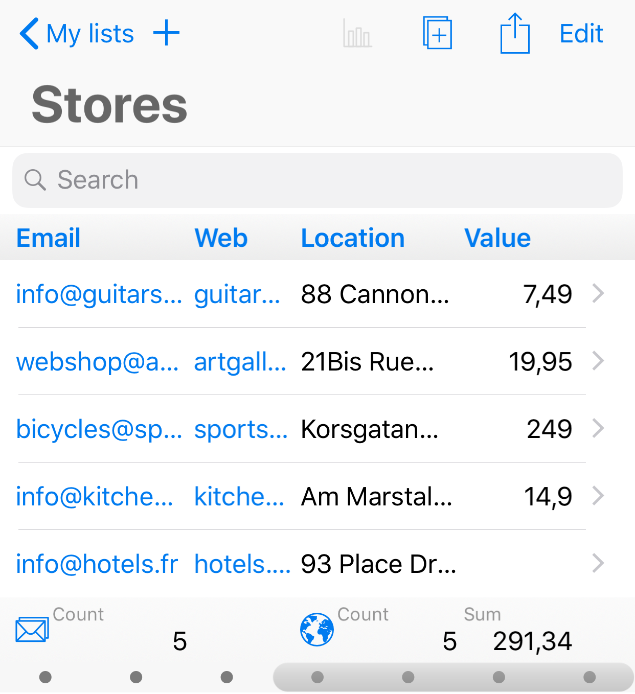 - A map view is presented with all locations for the column shown with a marker. If any image column is set to display as icon in map view, that image is shown in the map as the marker.