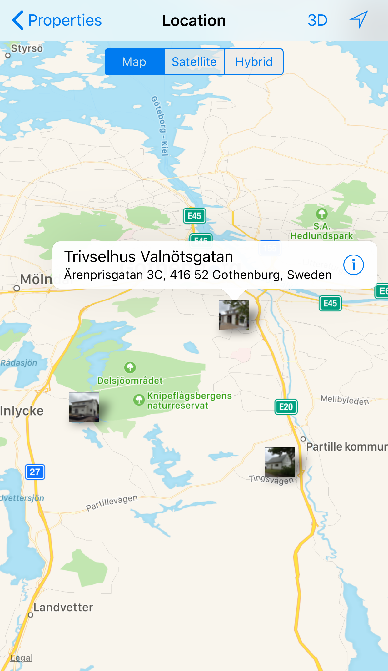 to show your current location on the map. Tap the Map, Satellite, and Hybrid buttons to change the view type of the map. Tap the 3D button to change to 3D view.